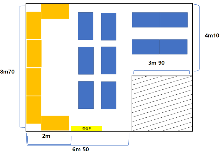 뷔페자리는 25평? 정도 사무실옆 비어있는 공간(임대아직안나감) 에 설치 할까 생각하고있습니다.